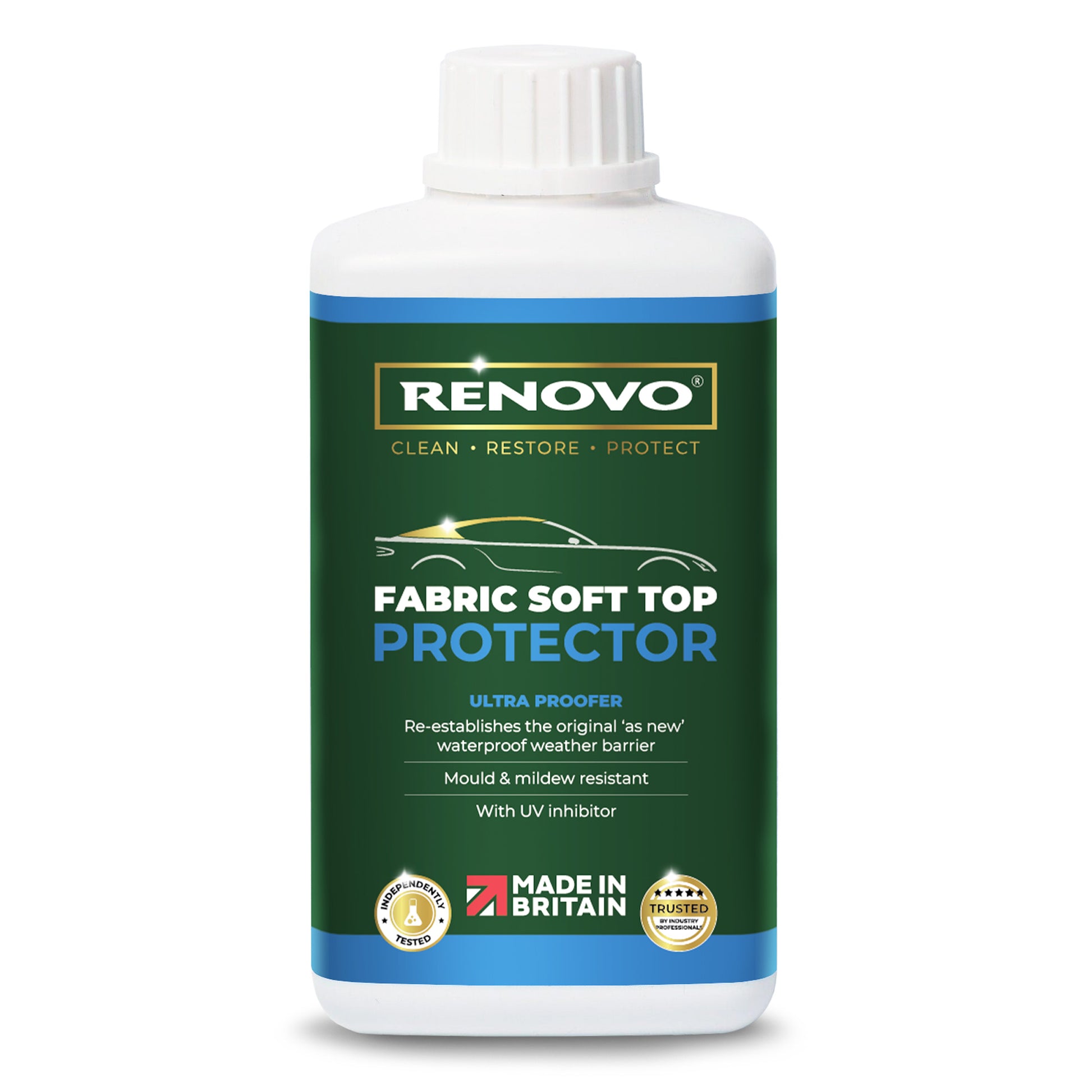 Nous vous recommandons d'utiliser le nettoyant Renovo Fabric Soft Top Cleaner pour nettoyer soigneusement votre capote. Effectuez d'abord un test sur une zone peu visible pour vous assurer que votre toit en tissu est teinté dans des couleurs résistantes.