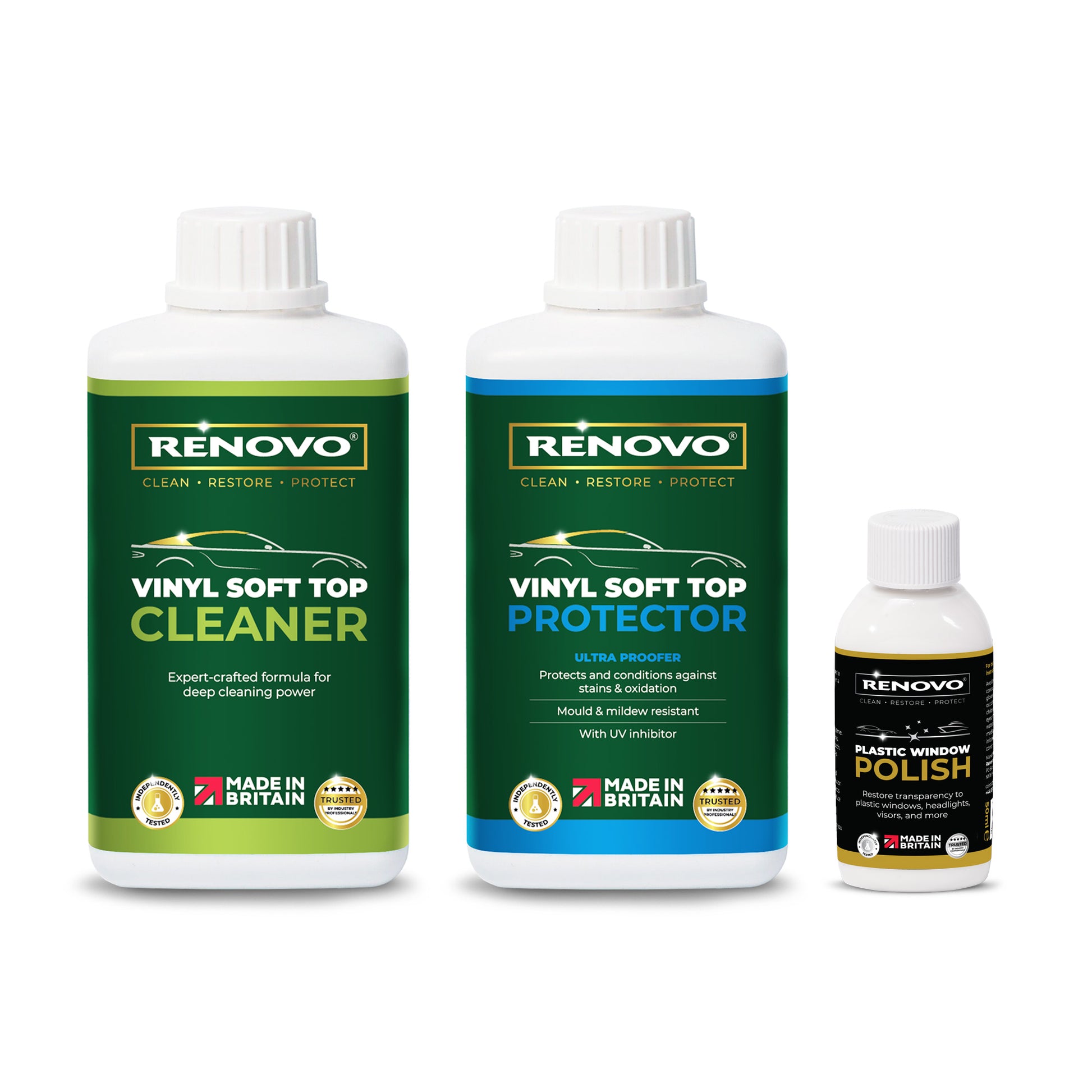 We recommend using Renovo Vinyl Soft Top Cleaner to thoroughly clean your soft top. Ensure your vinyl soft top is thoroughly dry, and you have sufficient product to complete a full coat.